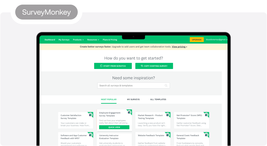 От $34 за базовый пакет до $74 за лицензию Enterprise. Для крупного бизнеса компания предлагает индивидуальные тарифные планы, которые зависят от сложности решения. Есть бесплатная версия, но в ней можно собирать не больше 25 ответов в месяц.