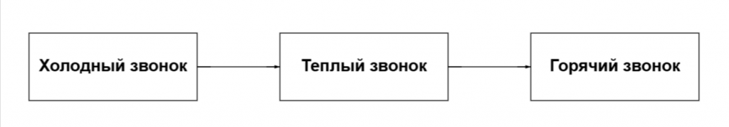 Работа с холодной базой клиентов выявляет заинтересованность потенциального клиента, тёплые звонки подводят к покупке, горячие — закрывают сделку.